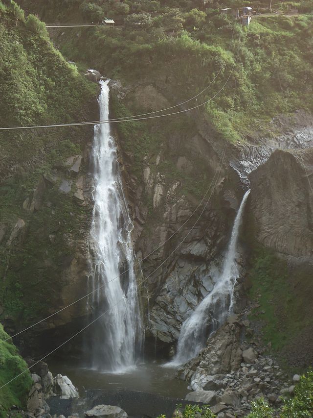 The Baños waterfalls can be found east of Baños along the Pastaza River and its smaller tributaries, creating a convenient and unmistakable waterfall route. Known as Ruta de las Cascadas, this 25km cycling route leads from Baños to Puyo, passing numerous waterfalls, ziplines, cable cars, swings, and even a bungee jump.